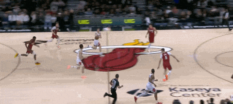 即使是面对身体素质更佳的防守球员,多森姆也能在转换中利用对抗意识获取优势,这一次持球面对威金斯,多森姆从右侧挤过,一条龙突破找到右手上篮的机会。