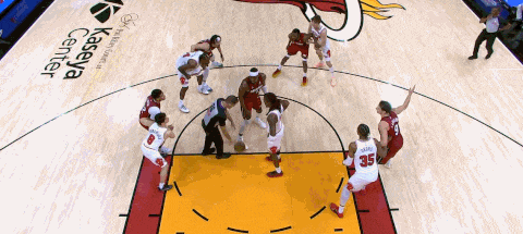 西班牙掩护,赫尔特背掩护制造热火中路换防混乱,帕威切入接多森姆助攻完成篮下双手扣篮: